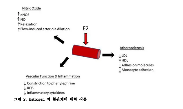 에스트로겐의 심혈관 보호효과를 정리하면 다음과 같습니다.