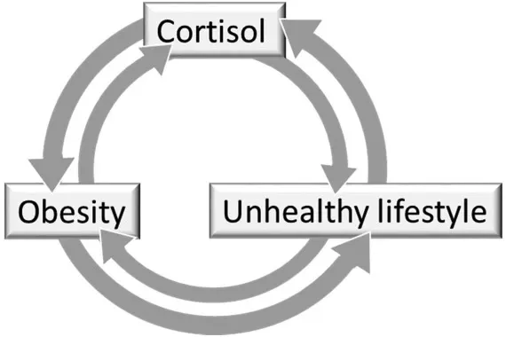 만성 스트레스 상태에서 코르티솔이 높게 유지되면, 체중에 불리한 변화가 연쇄적으로 생깁니다.
