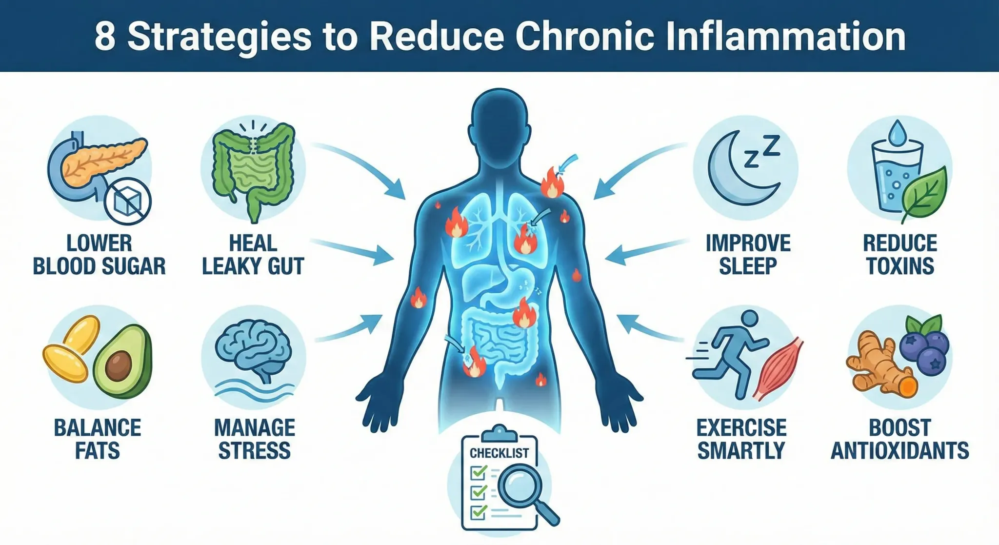 만성 염증은 하루아침에 생긴 것이 아니기에, 하루아침에 없앨 수도 없습니다. 하지만 위의 8가지 전략을 하나씩 라이프스타일에 적용한다면, 우리 몸은 분명히 회복의 신호를 보낼 것입니다.