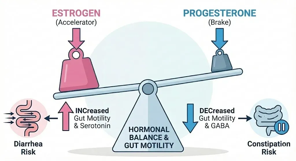 이론적으로 황체기(생리 전)에는 프로게스테론 때문에 변비가 와야 합니다. 하지만 많은 여성들이 생리 직전 폭발적인 설사를 경험합니다. 그 이유는 '에스트로겐 우세(Estrogen Dominance)'와 '히스타민' 때문입니다.