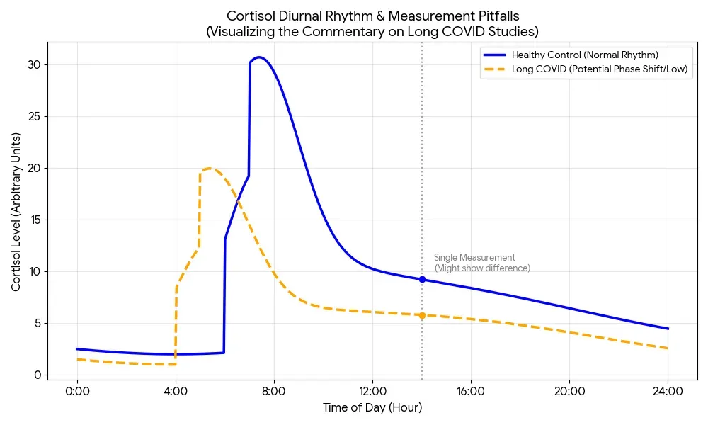 결론: "코르티솔 수치가 낮다"는 결과지 하나에 일희일비하기보다는, 그 수치가 나온 맥락과 나의 생활 리듬을 함께 고려하는 정밀한 진단이 필요합니다. 롱코비드와 부신 기능의 관계는 분명 중요하지만, 이를 입증하기 위해서는 더 엄격하고 과학적인 측정 방법이 선행되어야 합니다.